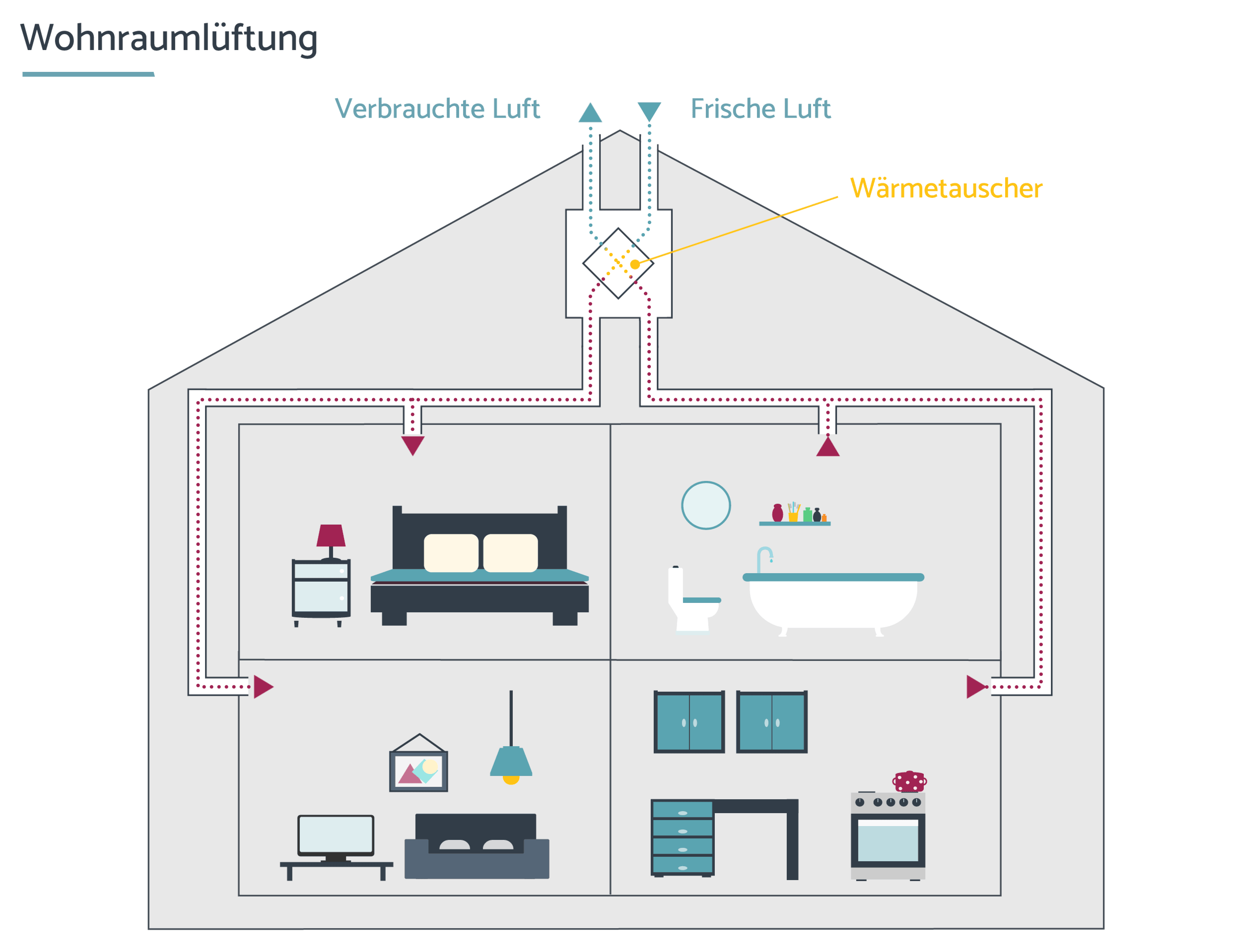 Ein ungesundes Raumklima, das zu viel CO2 und möglicherweise sogar Feinstaub, Pollen oder Schimmelpilzsporen enthält, kann Ihre Gesundheit negativ beeinflussen. Daher ist es wichtig, regelmäßig zu lüften. Allerdings hat die herkömmliche Fensterlüftung einige Nachteile. Die moderne Haustechnik bietet eine intelligente Option.